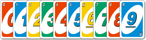 В Uno 4 цвета карт с номерами от 0 до 9. С нулём по одной каждого цвета, то есть всего четыре карты из колоды. Прежде чем положить карту на стол, нужно учесть что все остальные номера в каждом цвете имеют 2 карты. Нужно запоминать свои карты, а еще лучше пытаться просчитать, какие могут быть на руках у других.